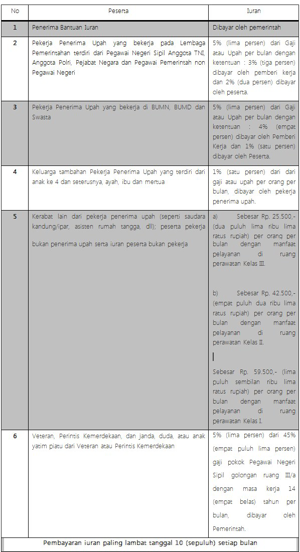 Peserta BPJS Kesehatan adalah setiap orang, termasuk orang asing yang bekerja paling singkat 6 (enam) bulan di Indonesia, yang telah membayar iuran, meliputi :