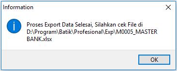3. Setelah proses export selesai maka akan muncul pemberitahuan sebagai berikut. Klik OK untuk menutup pemberitahuan tersebut.