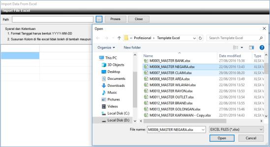 3. Maka muncul jendela Import File Excel, pilih Elipsis untuk mengambil file yang akan diimport dengan nama file M0007_MASTER NEGARA.xls (harus ada di folder Template Excel).