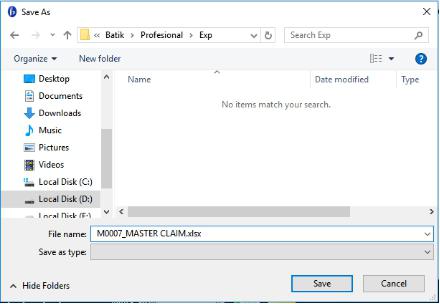 2. Buka template dengan nama M0006_MASTER CLAIM.xls, nama template ini tidak boleh diubah.