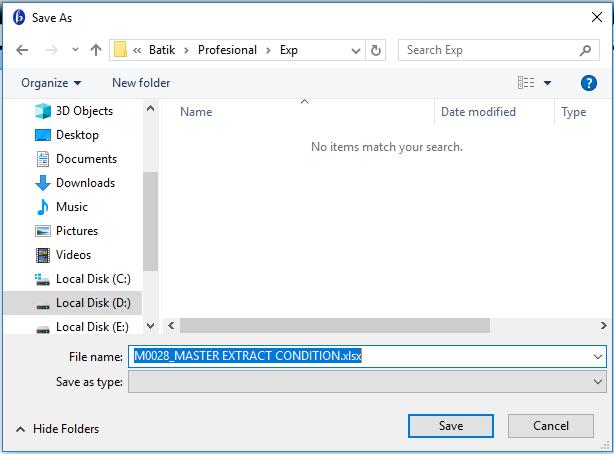 2. Buka template dengan nama M0028_MASTER EXTRACT CONDITION.xlsx, nama template ini tidak boleh diubah.