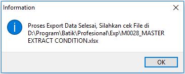 1. Buka Modul Master -> Lainnya -> Extract Condition, maka akan tampil jendela Extract Condition kemudian klik  Export  .