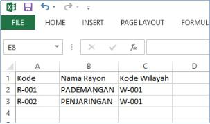 2. Buka template dengan nama M0023_MASTER RAYON.xls, nama template ini tidak boleh diubah.