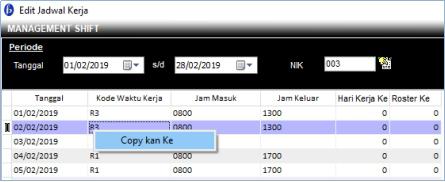 1. Klik kanan tampilan management shift, kemudian pilih Edit Jadwal Kerja - NIK.