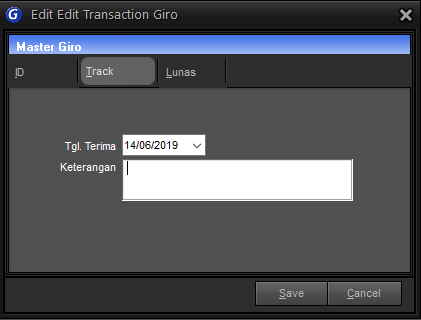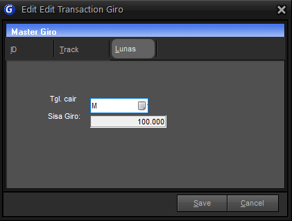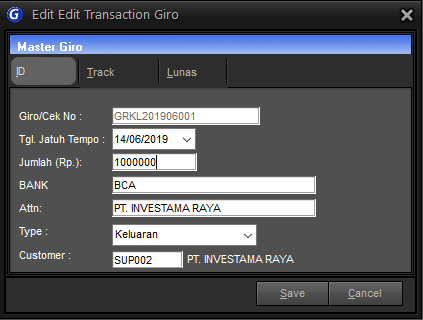 ** Data giro ini nantinya akan digunakan pada saat transaksi pelunasan piutang dan pembayaran hutang.