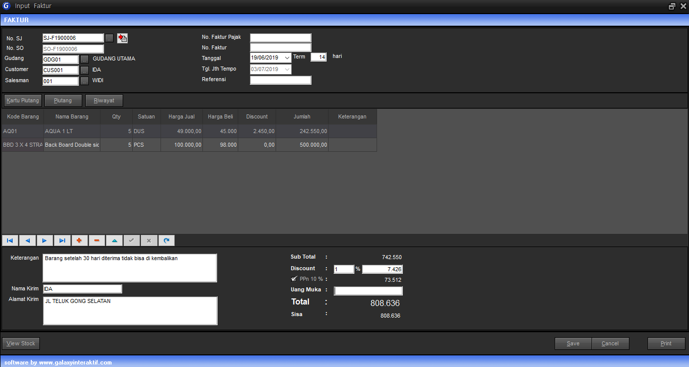 Salesman Muncul otomatis salesman apabila No. SJ sudah diisi