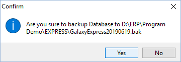 2. Klik OK untuk mulai melakukan backup database, klik Yes untuk melanjutkan, tunggu hingga proses selesai.