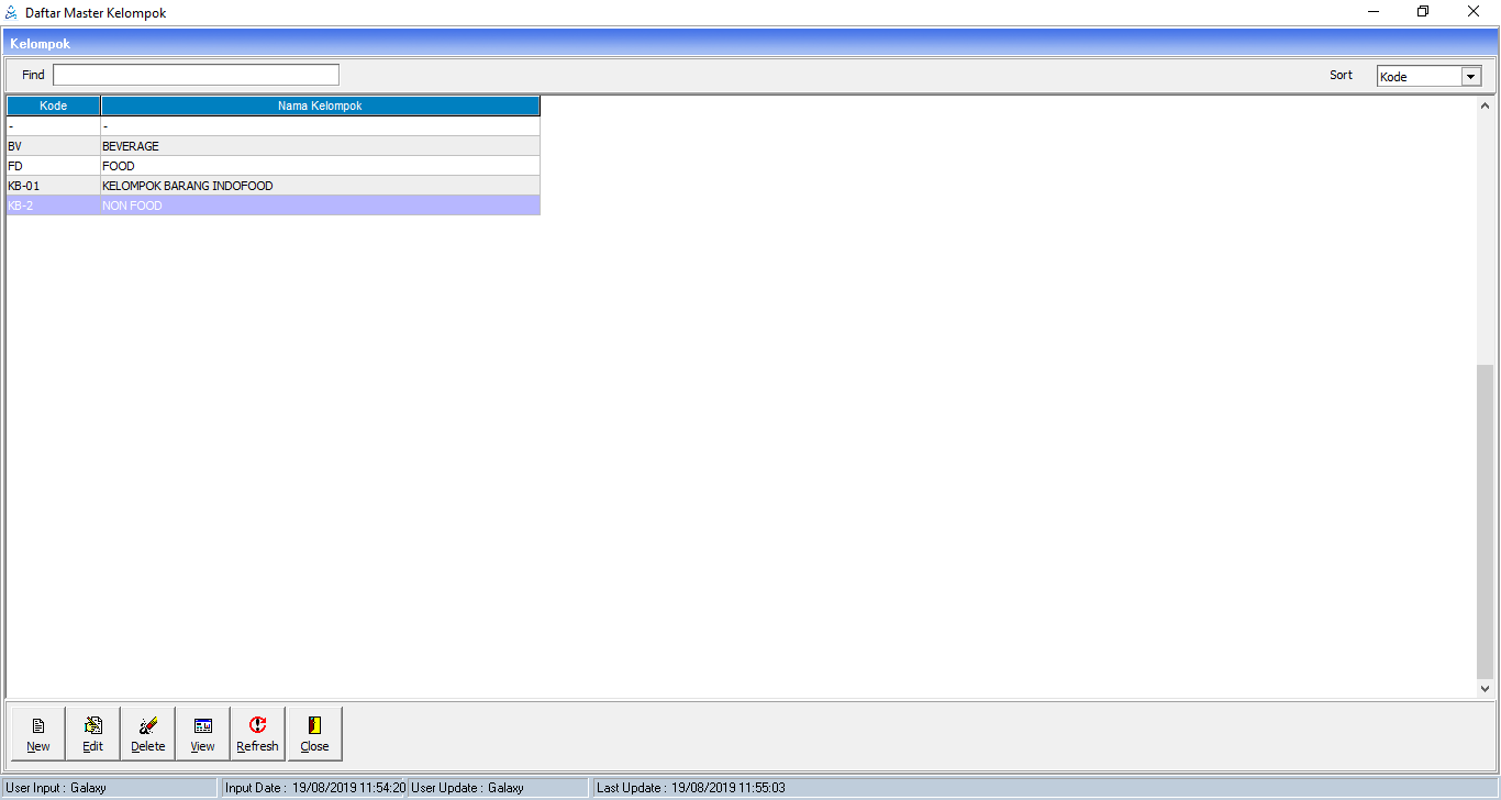 Barang dapat dikelompokkan menjadi beberapa bagian, menu Kelompok Barang ini adalah kelompok terbesar dari barang yang dapat dibagi lagi menjadi Sub Kelompok, kelompok barang ini nantinya akan dipakai pada menu sub kelompok.