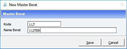 Kode | Diisi kode berat, bisa berupa huruf, angka maupun simbol max 10 karakter. |