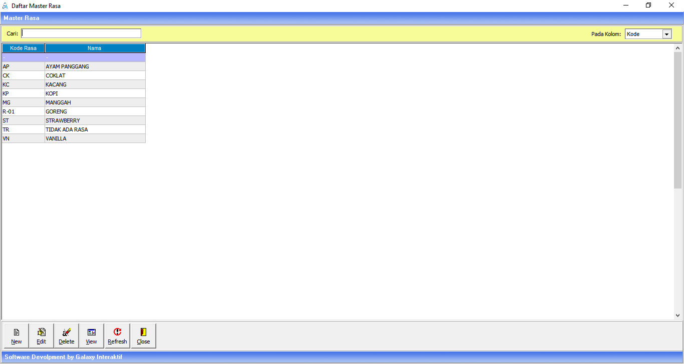Kode | Diisi kode rasa, bisa berupa huruf, angka maupun simbol max 10 karakter. |