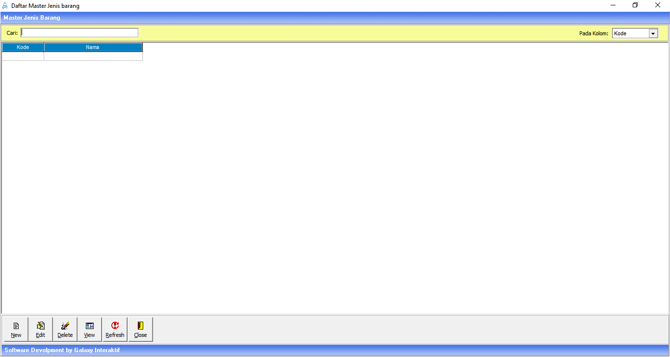 1 | Kode | Diisi kode jenis barang, bisa berupa huruf, angka maupun simbol max 10 karakter. |