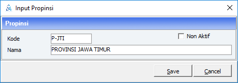 1 | Kode | Diisi kode propinsi, bisa berupa huruf, angka maupun simbol max 10 karakter. |
