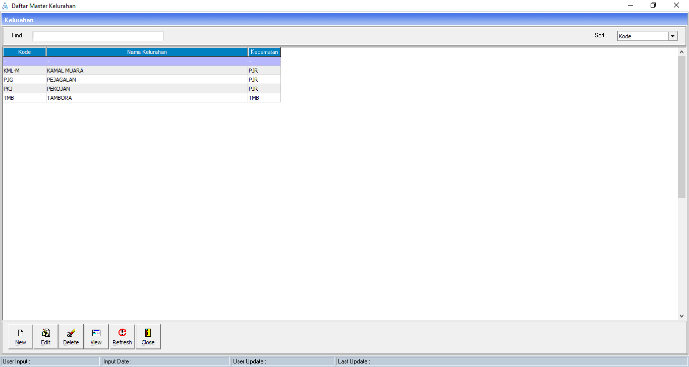 4 | Kode Kecamatan | Klik 2x untuk mengambil kode kelurahan. |