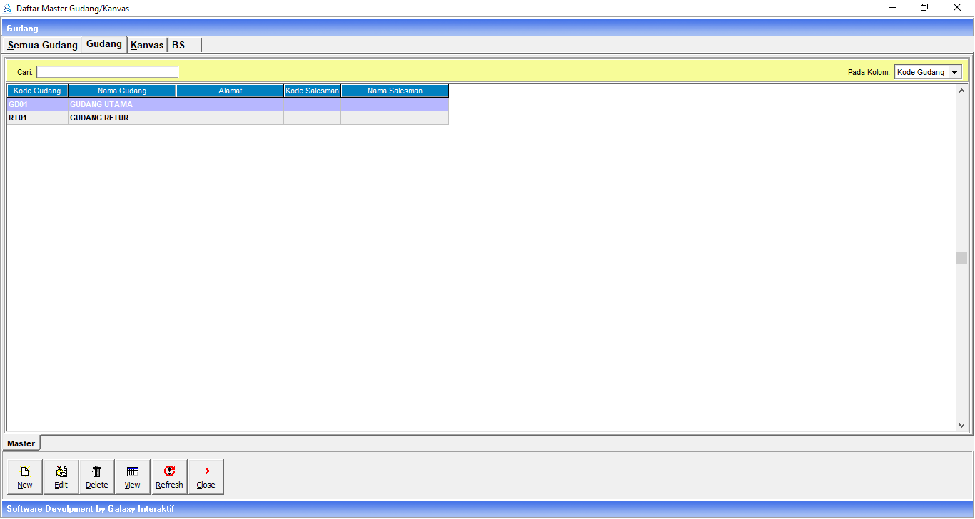 2. Master ini jangan dihapus jika sudah dipakai untuk data transaksi lain, jika gudang sudah  tidak digunakan lebih baik dinon-aktifkan saja.