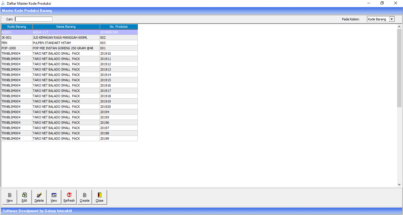 Kode | Diisi kode produksi barang untuk digit yang tidak berubah |
