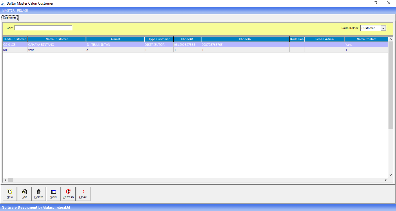 Menu ini digunakan untuk mengelola data calon customer. Nantinya jika calon customer fix menjadi customer, kodenya bisa di tarik ke menu customer.