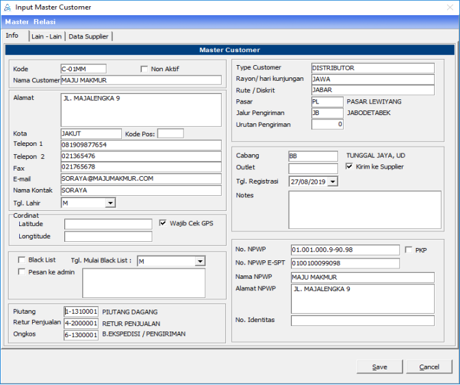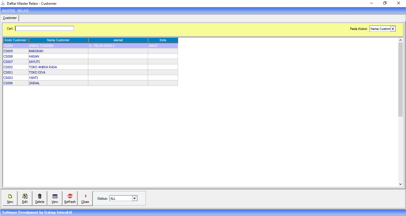 Untuk membuat data transaksi penjualan, diperlukan data customer sebagai identitas yang membeli barang ke distributor. Oleh karena itu, data customer harus terlebih dahulu dimasukkan ke dalam aplikasi.