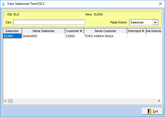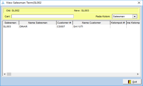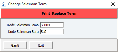Menu Ganti Salesman ini digunakan pada saat adanya pergantian salesman, baik itu salesman baru ke salesman lama ataupun salesman lama saling bertukar customer. Berikut lengkapnya :
