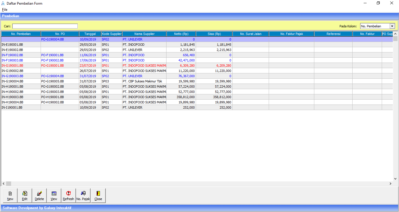 No.Pembelian | Muncul otomatis apabila data telah disimpan. |