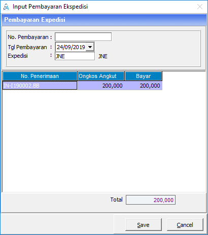3. Maka akan muncul jendela Input Pembayaran Ekspedisi.