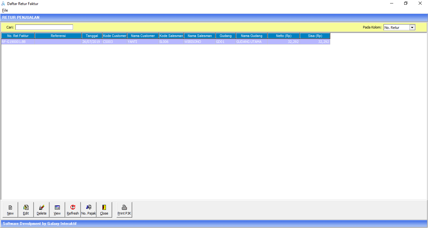 No.Faktur Pajak | Diisi nomor faktur pajak retur jika retur tersebut dikenai PPN |