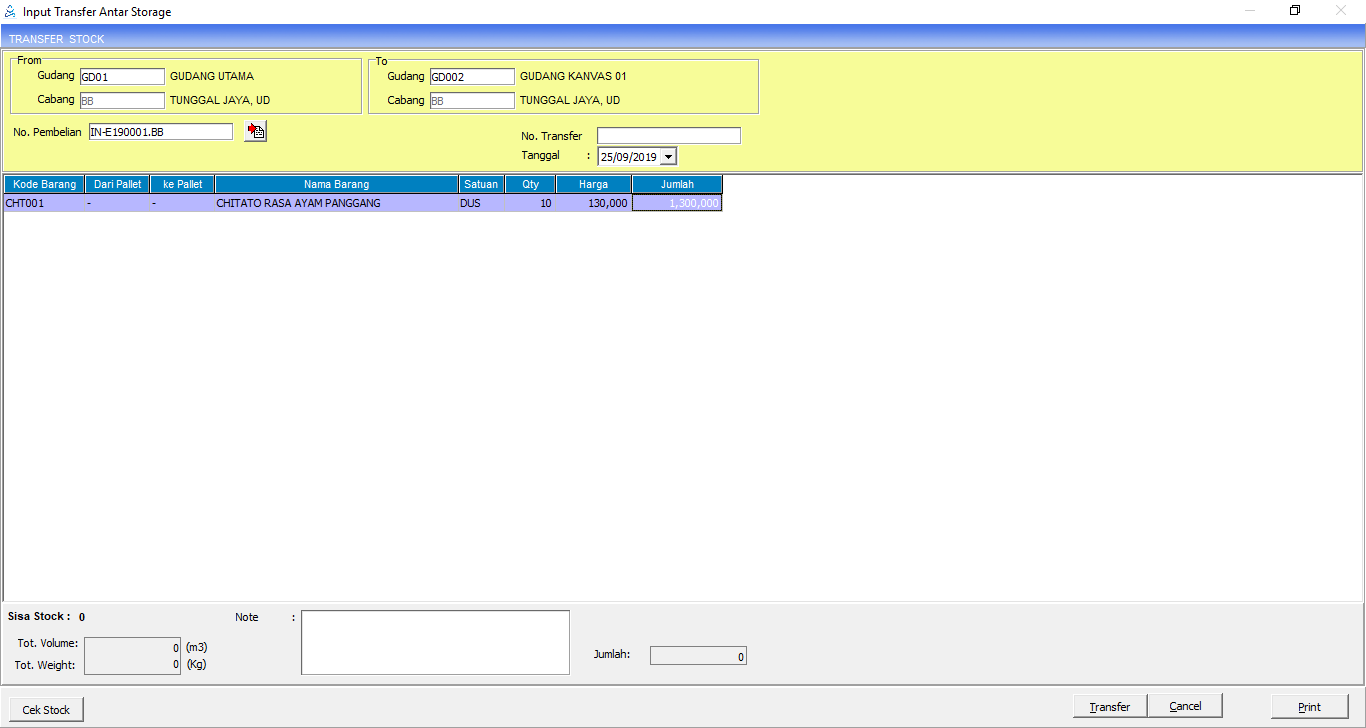 From | Klik 2x kolom gudang untuk mengambil kode gudang asal |