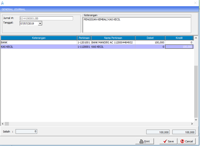 4. Lalu Klik save. Maka akan muncul jendela Master Jurnal Umum.
