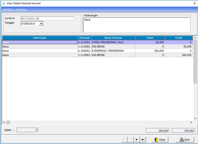 Jurnal Kas di hasilkan dari transaksi Kas Masuk dan Kas Keluar yang terdapat pada menu Kasir. Melalui menu Posting Jurnal -> Transaksi Kas. Setiap perubahan pada transaksi kas di menu kasir, maka jurnal kas ikut berubah.