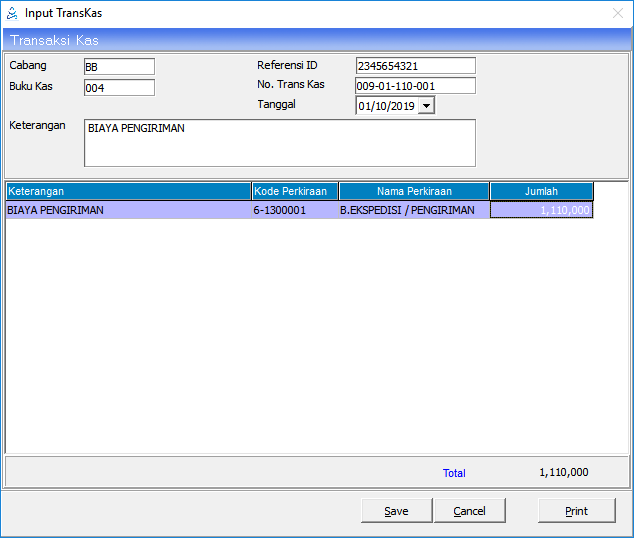 No.TransKas | Muncul otomatis setalah data ini disimpan |