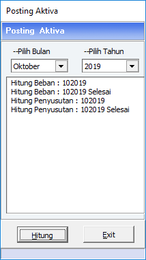 Posting aktiva ini digunakan untuk menghitung ulang jumlah penyusutan aktiva pada periode yang diposting. Penyusutan ini nantinya akan terkait dengan akun-akun yang sudah dimasukkan ke dalam masing-masing Master Aktiva (Akun Aktiva Tetap, Akumulasi Penyusutan, dan Beban Penyusutan).