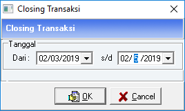 Menu ini digunakan untuk melakukan closing terhadap semua transaksi sekaligus.