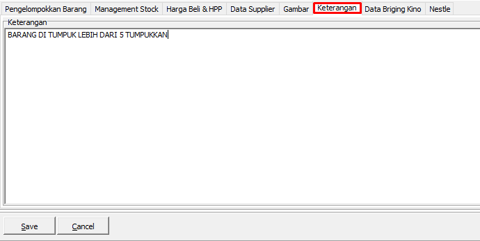 2. Master ini jangan dihapus jika sudah dipakai untuk data Barang karena akan merusak data yang berkaitan dengan jenis barang  tsb.