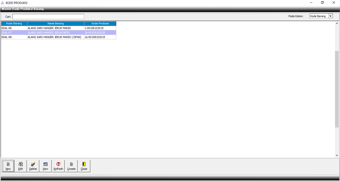 2. Maka akan muncul jendela Master Kode Produksi, kemudian klik View.