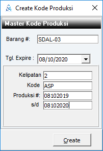 Apabila ingin mengetahui mengenai tanggal expire suatu produk, maka data tersebut bisa di catat pada menu Kode Produksi setiap ada kode produksi/ batch baru.