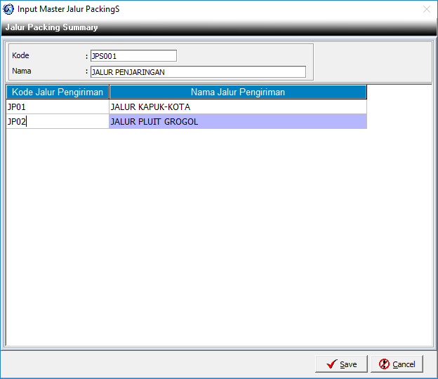 Kode Jalur Pengiriman | Klik 2x untuk mengambil kode jalur pengiriman. |