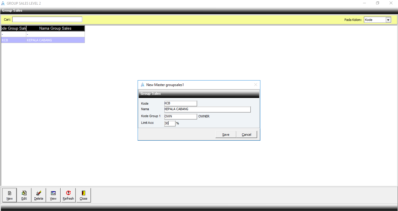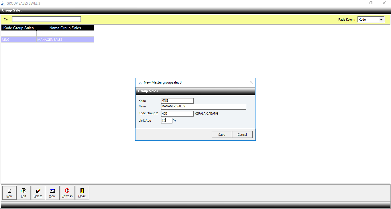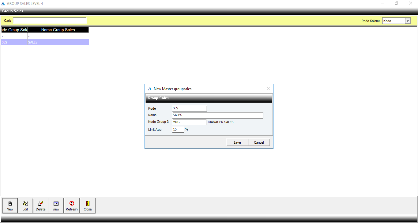 2. Kemudian klik New pada jendela Master Group Sales 4,