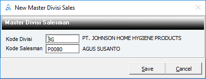 Nama Salesman                   Terisi otomatis setelah klik New pada salesman yang akan ditambah data divisi.
