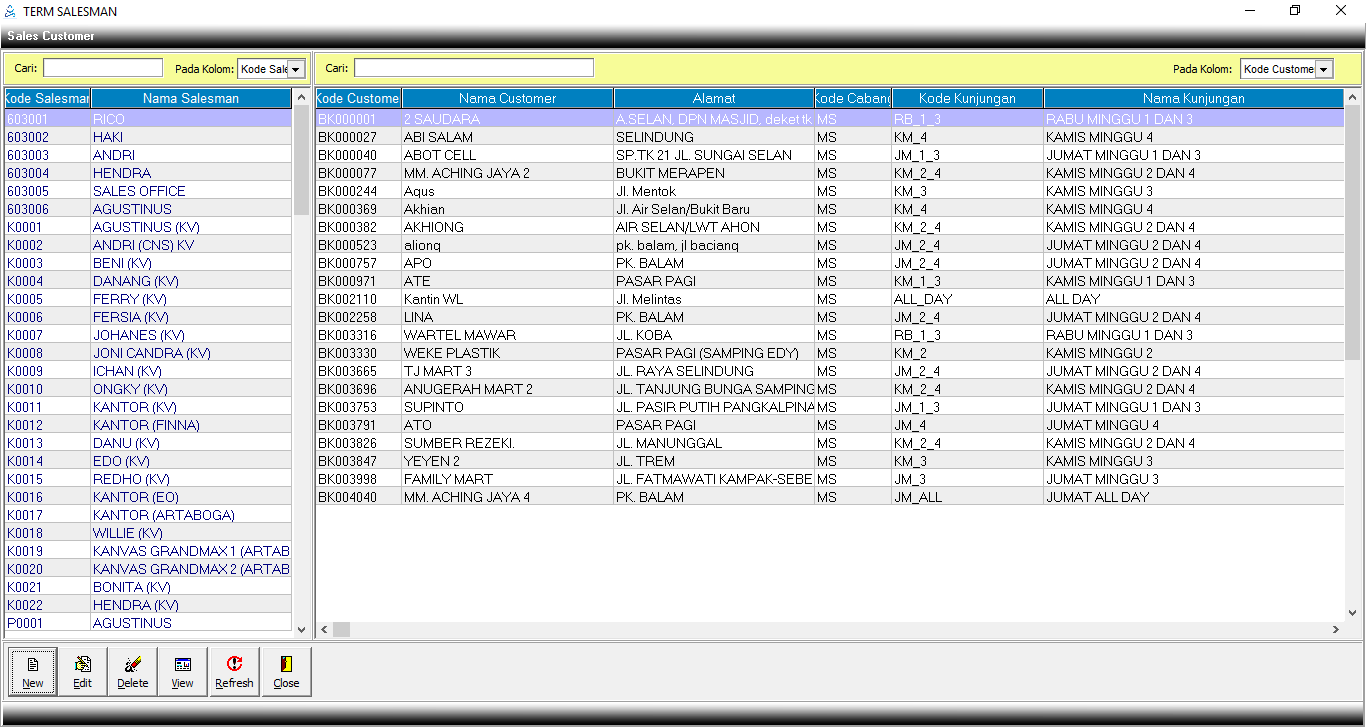 Term salesman, merupakan menu yang digunakan untuk mengelola data-data customer yang dihandle oleh salesman. Satu salesman dapat menangani lebih dari satu customer walaupun termnya berbeda. Menu ini menampilkan  data salesman, customer nya siapa saja.  Satu toko untuk beberapa salesman.