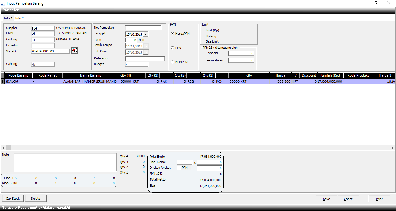 Muncul sesuai dengan term yang ada di master Supplier.