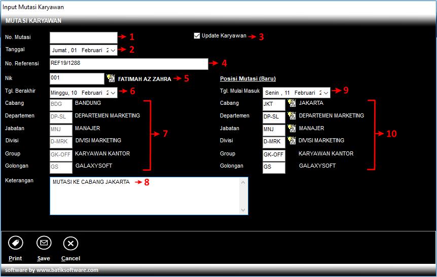5 | NIK | Klik 2x untuk mengambil NIK karyawan yang akan dimutasikan |