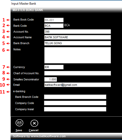 - Buku Bank tidak boleh dihapus atau diubah kodenya jika sudah dipakai pada data Gaji Karyawan, karena akan mengakibatkan data Gaji Karyawan berantakan.