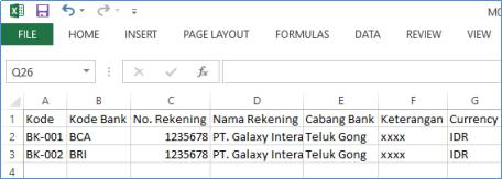 B Kode Bank Diisi kode Bank yang sebelumnya telah didaftarkan pada master Bank