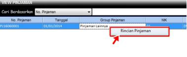 2. Pilih No.Pinjaman yang akan ditampilkan Saldo Pinjamannya, kemudian klik kanan dan pilih Rincian Pinjaman.