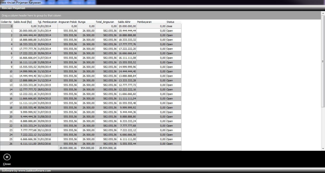 3. Maka akan tampil rincian saldo pinjaman seperti jendela dibawah ini,