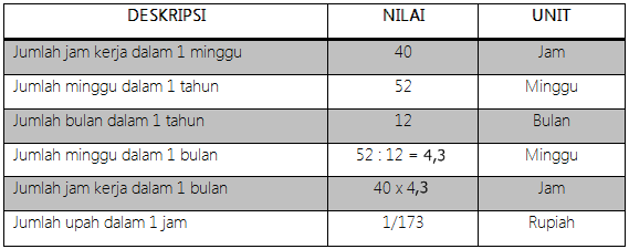 2. Besarnya upah kerja dalam satu jam adalah 1/173 dikalikan upah yang menjadi dasar perhitungan seperti yang telah disebutkan diatas.