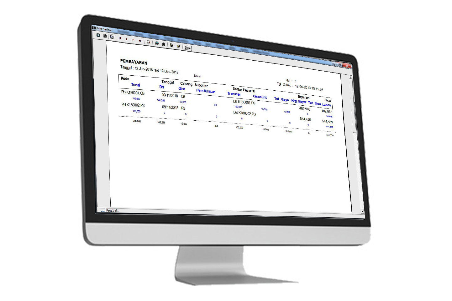 Menu Report Pembelian digunakan untuk keperluan cetak-mencetak, melihat laporan-laporan mengenai transaksi pembelian, pelunasan dan laporan lain yang berkaitan dengan pembelian.
