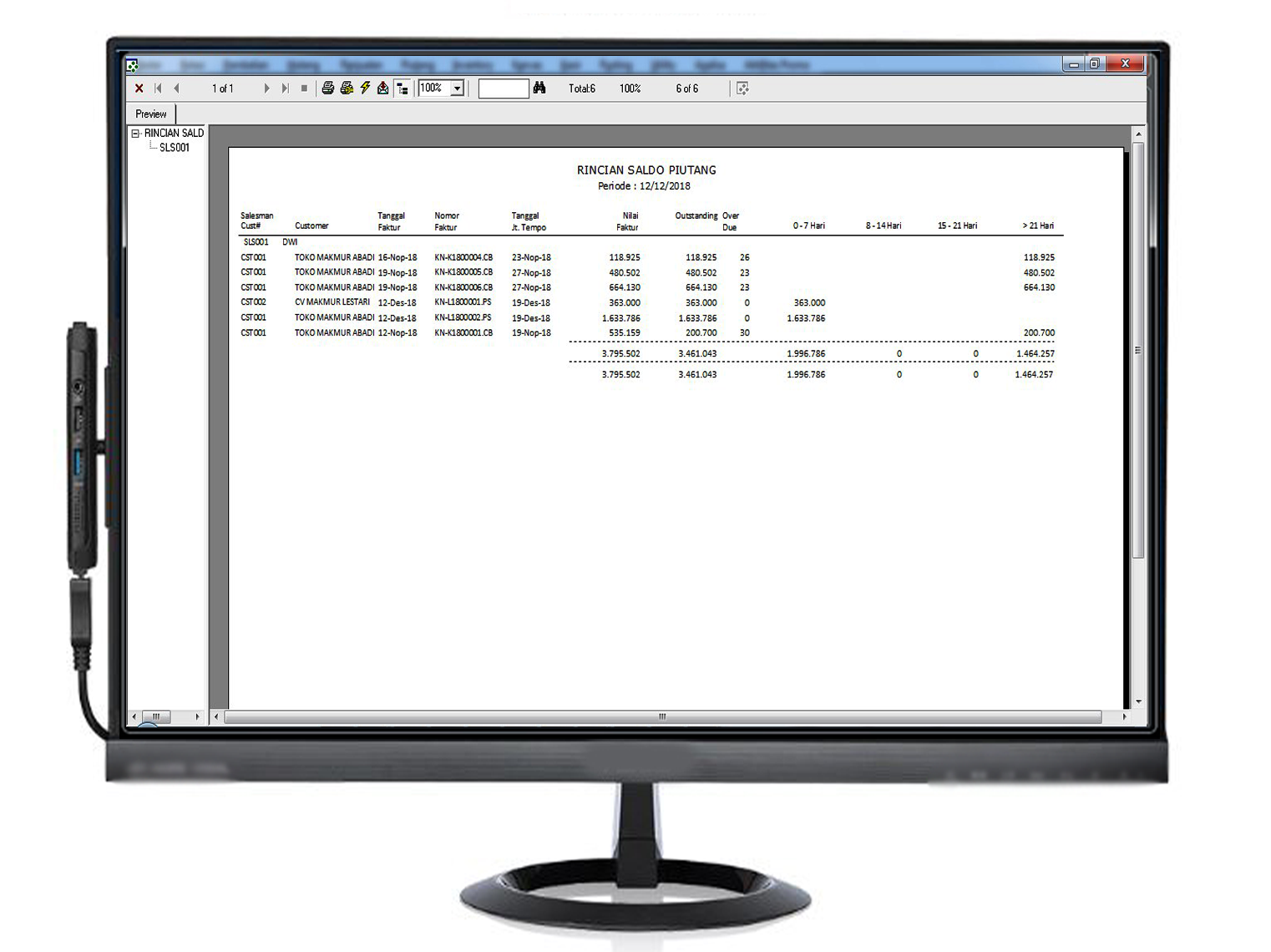 Menu ini digunakan untuk menampilkan rincian piutang semua faktur yang belum dilakukan pelunasan, masing-masing faktur yang belum dilunasi juga dapat diketahui umur piutangnya.