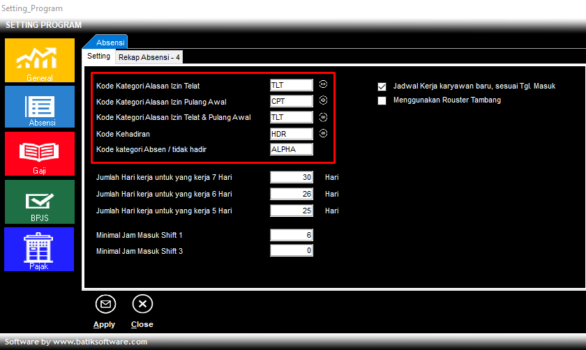 1. Buka Setting Program -> Absensi