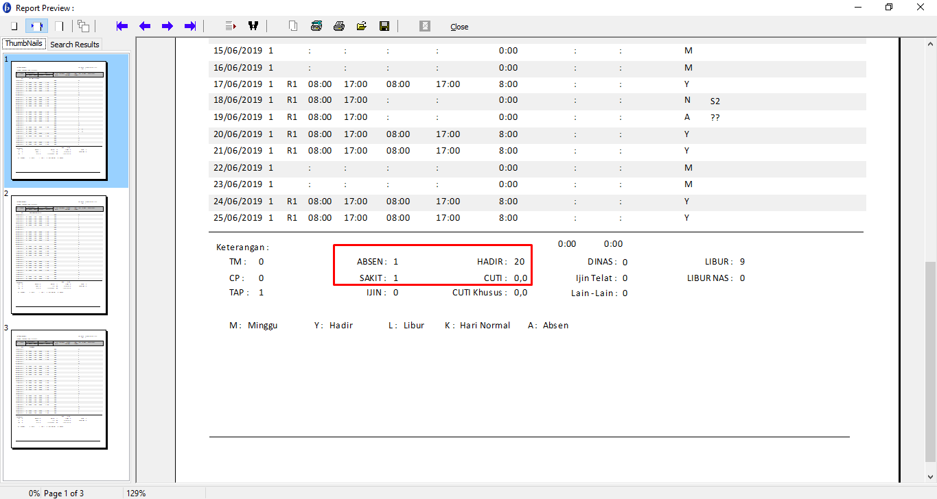 Setelah dilakukan proses absensi, berikut contoh hasil report yang didapatkan.