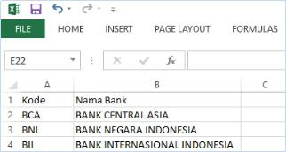 B | Nama Bank | Diisi nama bank |